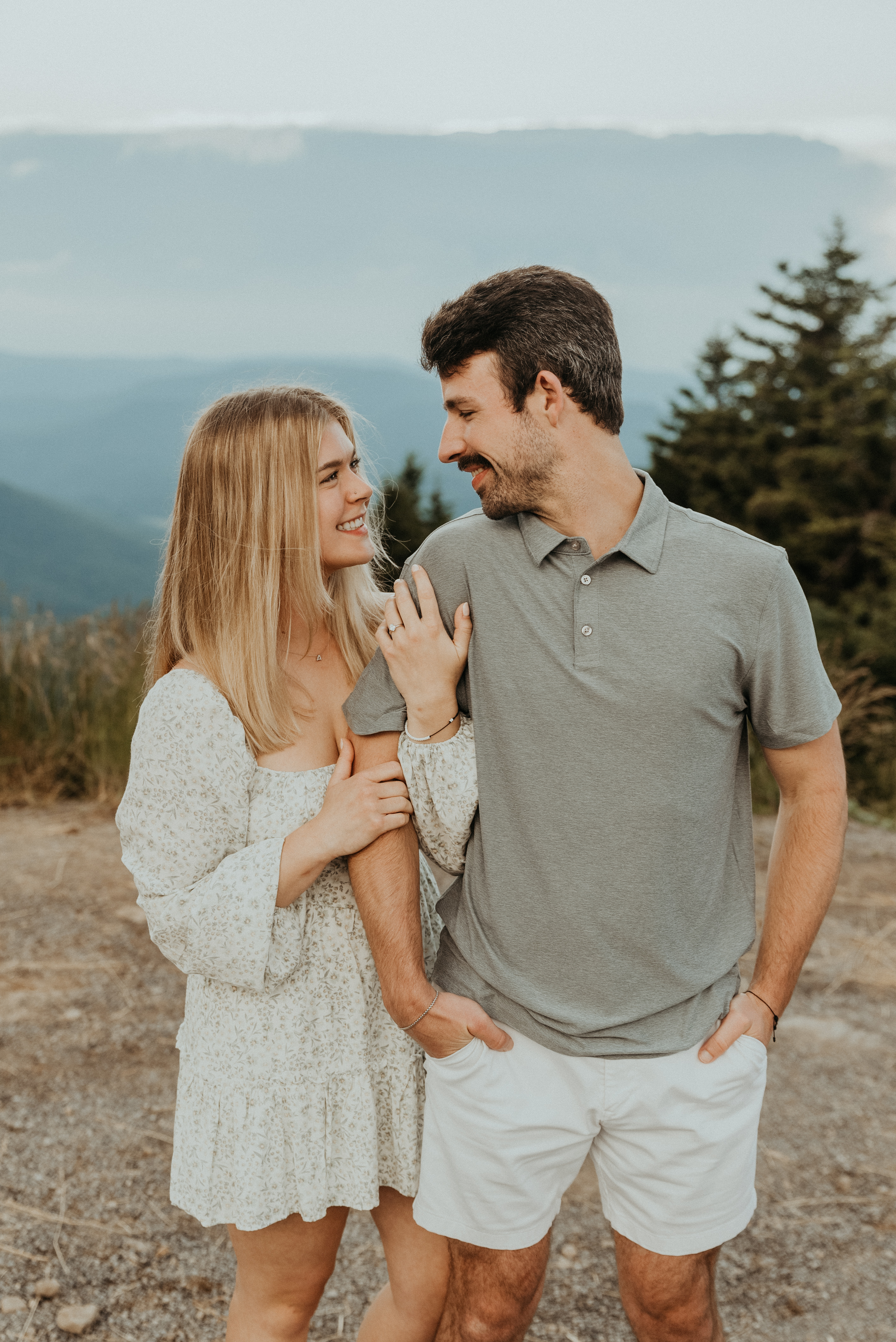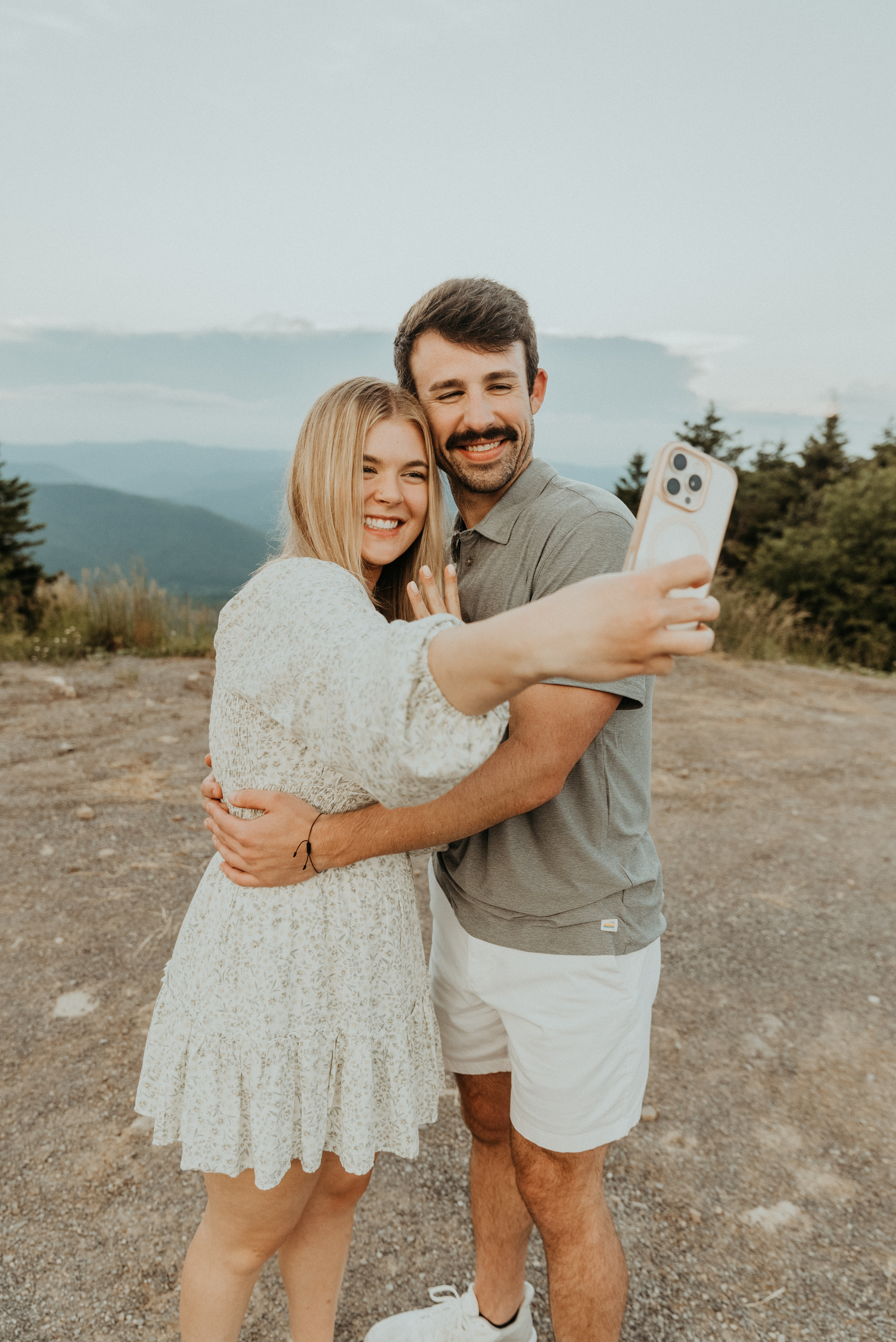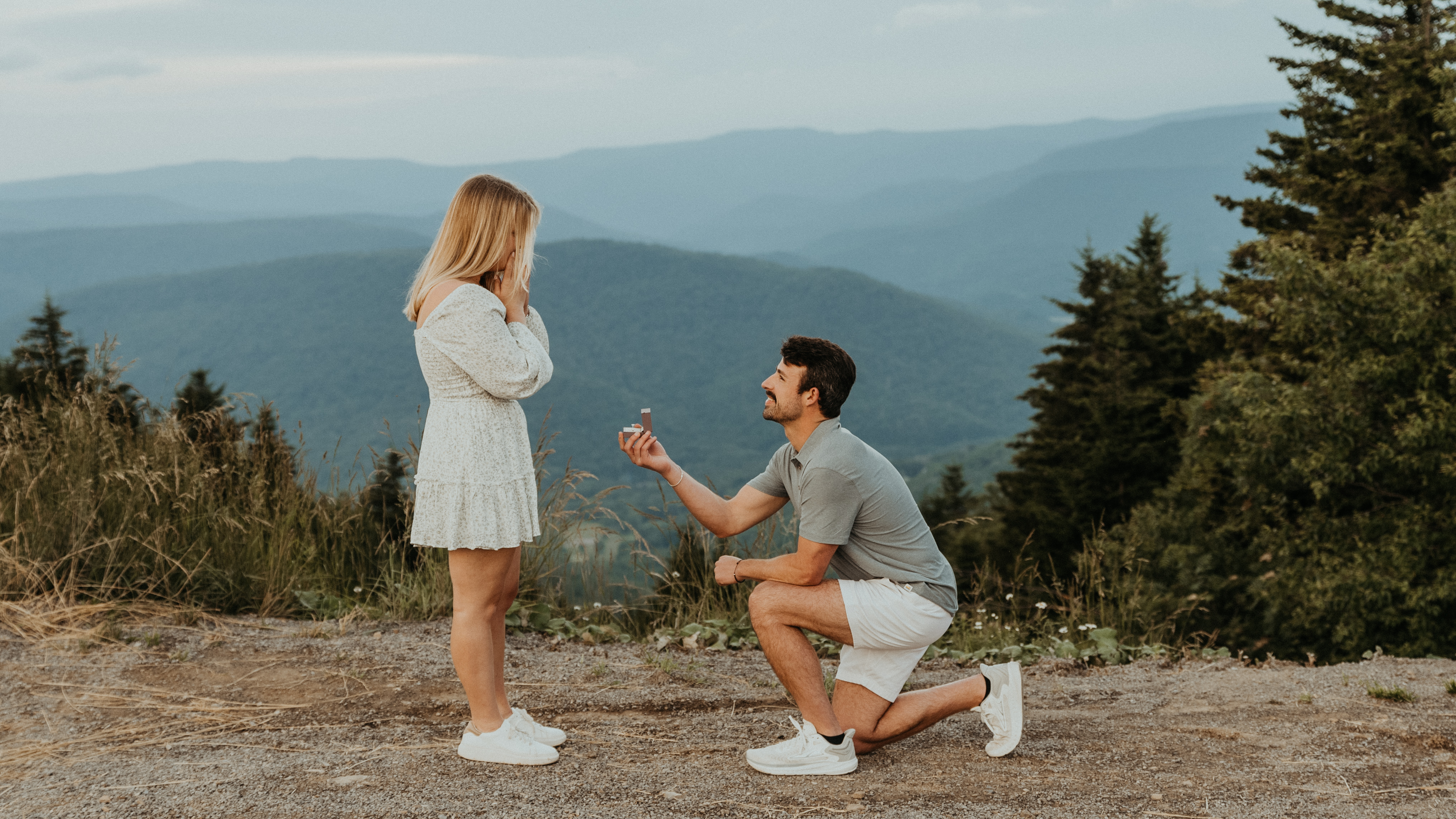 The trip began with a long drive to Snowshoe Mountain, West Virginia, known for its winter slopes and summer transformation into a downhill bike park. As they neared the resort, the views opened up into endless layers of mountains. At a scenic overlook called "Top of the World", Addie asked Alec to pull over so she could take a quick video of the view. What she didn’t know was that Alec had planned to propose at that very spot the next day!